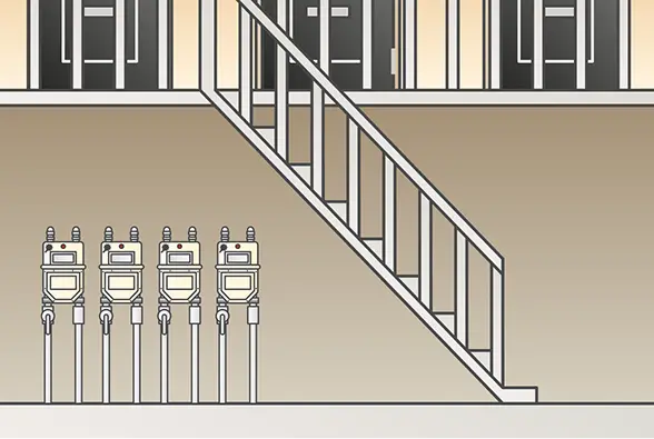 外に複数並列設置(部屋番号のシールが貼ってあります)